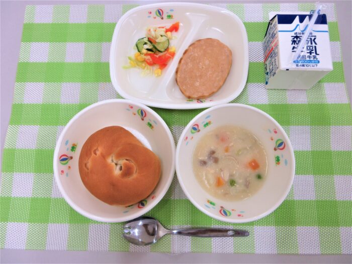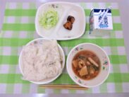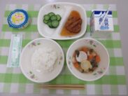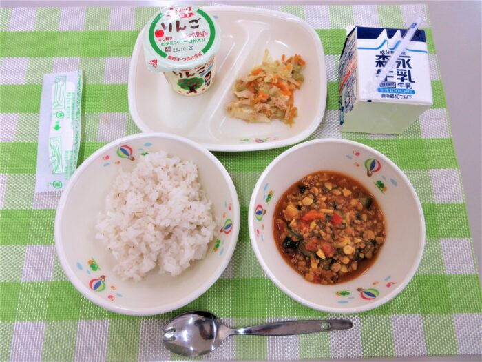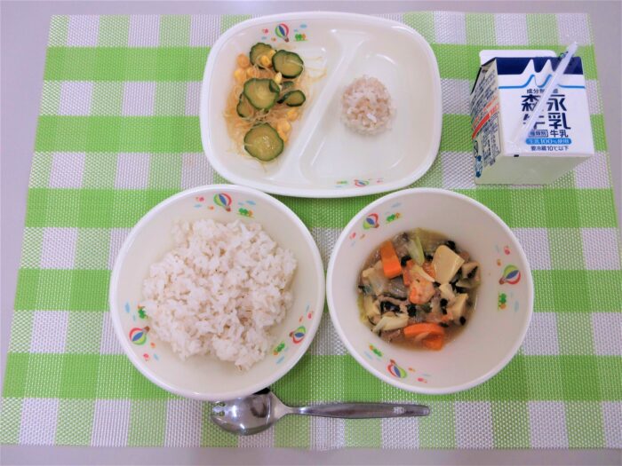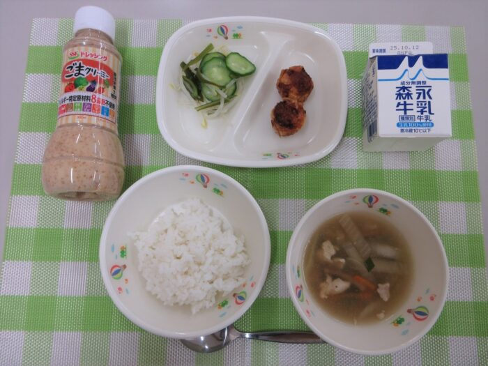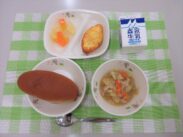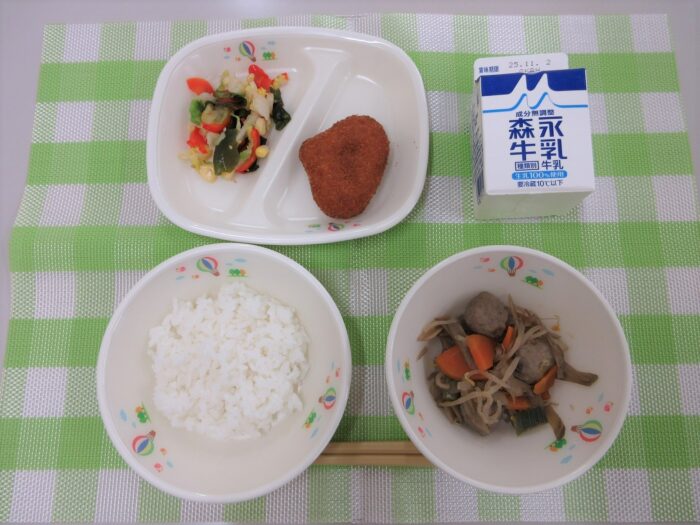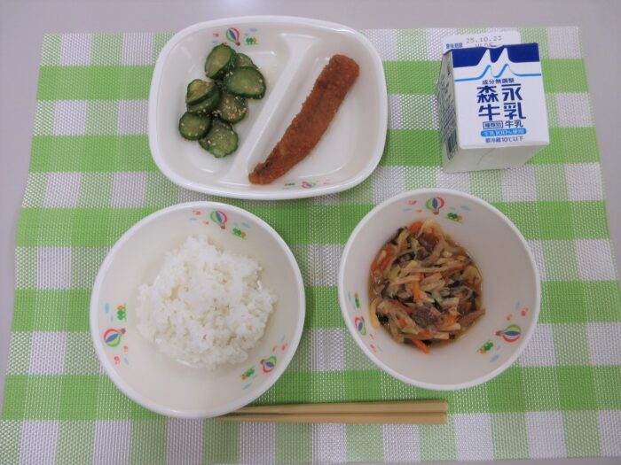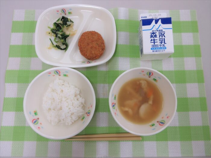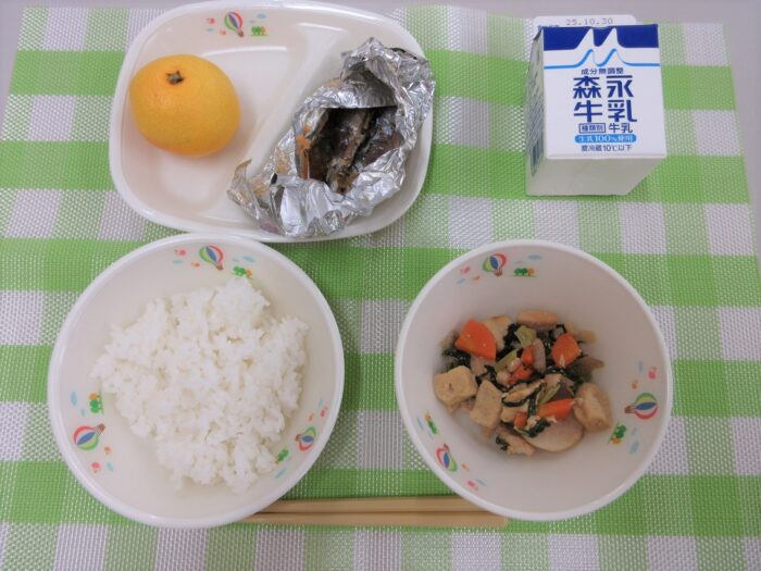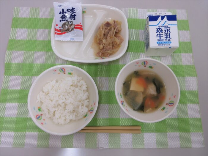 中部学校給食共同調理場献立カレンダー(献立は安城市の栄養士が作成しています) 全公立保育園(18園)、認定こども園(9園)、サルビア学園 2025年10月 前月 次月 日 月 火 水 木 金 土 1ごはん ぎゅうにゅう ぶたにくとこんさいのきんぴら いわしのうめに いそかあえ 2りんごパン ぎゅうにゅう とりにくときのこのクリームに ボロニアソーセージ カラフルマリネ 3ごはん ぎゅうにゅう ちゅうかふうスープ あげえびしゅうまい(2こ) くきわかめサラダ たくじょうごまドレッシング 6ごはん ぎゅうにゅう つきなじる うさぎハンバーグのいちじくソースかけ さっぱりきゅうり つきみゼリー ☆お月見献立☆ 7ごはん ぎゅうにゅう ひきずり ごもくあつやきたまご キャベツちもやしのあえもの 8むぎごはん ぎゅうにゅう ちゅうかはんのぐ もちごめむし はるさめサラダ 9きしめん ぎゅうにゅう ごもくきしめんのしる だいがくいも みどりキャベツ 10むぎごはん ぎゅうにゅう あんじょうハーモニーカレー キャベツとツナのソテー りんごヨーグルト 13 14ごはん ぎゅうにゅう ぶたにくとやさいのほそぎりいため こめこししゃもフライのレモンに きゅうりのごまじょうゆあえ 15ごはん ぎゅうにゅう とりだんごじる ぶたにくのしょうがいため こざかな 16ごはん ぎゅうにゅう ぶたじる いかのこうみあげ いためれんこんサラダ たくじょうわふうクリーミードレッシング 17クロロールパン ぎゅうにゅう キャベツのツナに トマトいりオムレツ ファイバーゼリーのフルーツあえ 20ごはん ぎゅうにゅう こんさいのごまじる ミンチカツ はくさいのおひたし 21ごはん ぎゅうにゅう こうやどうふのいりに さんまのぎんがみやき みかん 22ごはん ぎゅうにゅう ツナとじゃがいものにつけ とりにくのてりやき キャベツのかおりあえ 23ソフトめん ぎゅうにゅう ジャージャーめんのぐ てつじんサラダ たくじょうちゅうかふうドレッシング あんにんどうふ 24ごはん ぎゅうにゅう ちゃんこに くりコロッケ わかめとやさいのごまずあえ 25 27むぎごはん ぎゅうにゅう ポークビーンズ あじのフリッター コーンピラフのぐ ようなしミニゼリー 28ごはん ぎゅうにゅう はくさいのみそしる にくだんごのあまからに ポテトサラダ たくじょうノンエッグマヨネーズ 29ごはん ぎゅうにゅう クッパのスープ(かんこく) ヤンニョムチキン(かんこく) だいこんのあまずあえ ☆アジア大会応援献立(韓国)☆ 30こがたロールパン ぎゅうにゅう やさいたっぷりやきそば ソーセージのケチャップに コーヒーぎゅうにゅうのもと 31わかめごはん ぎゅうにゅう けんちんじる とりにくとキャベツのみそいため りんご