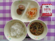北部学校給食共同調理場献立カレンダー(献立は愛知県の栄養教諭が作成しています。献立に関するメッセージが掲載されている献立表は、献立一覧からご覧いただけます。) 小学校(安城中部、安城東部、安城北部、錦町、志貴、作野、里町、桜町、新田、今池、梨の里) 中学校(安城南、安城北、東山、篠目) 2026年1月 前月 次月 日 月 火 水 木 金 土 1 2 5 6 7 8ごはん ぎゅうにゅう ビビンバのぐ きんしたまご ワンタンスープ ヨーグルト ☆新学期スタートダッシュメニュー☆ 9こめこパン(こむぎいり) ぎゅうにゅう やさいたっぷりやきそば ソーセージのケチャップに りんごミニゼリー ☆新学期スタートダッシュメニュー☆ 12 13むぎごはん ぎゅうにゅう チキンカレー やきソーセージ はちみつレモンサラダ ☆新学期スタートダッシュメニュー☆ 14ごはん ぎゅうにゅう あじのいそべフライ だいずのおやこサラダ すずなとすずしろのとりだんごじる 15ごはん ぎゅうにゅう さばのぎんがみやき にくじゃが くきわかめサラダ 16むぎごはん ぎゅうにゅう マーボーだいこん はるまき もやしのナムル 19ごはん ぎゅうにゅう チキンカツ からしあえ さんぺいじる 20ごはん ぎゅうにゅう チャプチェ キムチチゲ りんごゼリーのフルーツあえ ☆アジア大会応援献立(韓国)☆ 21ごはん ぎゅうにゅう えびカツ こまつなのごまあえ かきたまじる 22ごはん ぎゅうにゅう つくね(2こ) ぶたにくとやさいのほそぎりいため なます 23ごはん ぎゅうにゅう さけフライ いそかあえ とうにゅういりみそしる たくじょうソース 26むぎごはん ぎゅうにゅう とりめしのぐ かぼちゃコロッケ はちはいじる ☆全国学校給食週間(26日~30日)愛知県の郷土料理や地場産物が出ます☆ 27ごはん ぎゅうにゅう いわしのうめに ちくぜんに キャベツのかおりあえ 28きしめん ぎゅうにゅう やさいたっぷりごもくきしめんのしる れんこんサンドフライ きりぼしだいこんのベーコンいため 29ごはん ぎゅうにゅう おやこに しのだのみそかけ キャベツのたくあんあえ たくじょうあまみそ 30スライスパン ぎゅうにゅう ハンバーグのいちじくかけソースかけ さっぱりきゅうり コンソメスープ だいずチョコクリーム ☆いちじくソースに入っているいちじくジャムは安城市農畜産物特産品協議会からの寄贈です☆