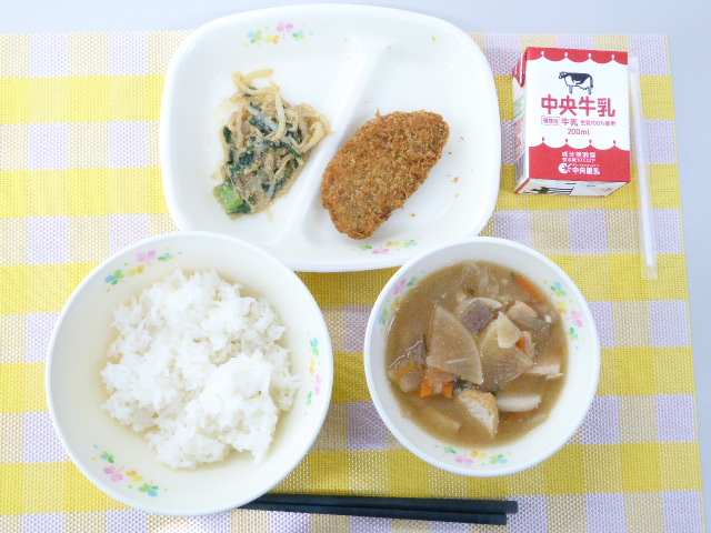 南部学校給食共同調理場献立カレンダー(献立は愛知県の栄養教諭が作成しています。献立に関するメッセージが掲載されている献立表は、献立一覧からご覧いただけます。) 小学校(安城南部、安城西部、高棚、明和、桜井、祥南、丈山、二本木、桜林、三河安城) 中学校(明祥、安城西、桜井、安祥) 2025年12月 前月 次月 日 月 火 水 木 金 土 1ごはん ぎゅうにゅう かれいフライのレモンに キャベツとチンゲンサイのしそひじきあえ おやこじる 2ごはん ぎゅうにゅう ぶたどんのぐ さつまいものみそしる みかん 3スライスパン ぎゅうにゅう コロコロフライドチキン コーンサラダ ミネストローネ いちごジャム 4ごはん ぎゅうにゅう たらのぎんがみやき はくさいとみずなのそくせきづけ ふゆやさいのとりだんごじる 5ごはん ぎゅうにゅう わかさぎのなんばんづけ じゃがいものそぼろに れんこんサラダ 8むぎごはん ぎゅうにゅう かいせんちゅうかはんのぐ ポークしゅうまい チンゲンサイのピリからサラダ 9ごはん ぎゅうにゅう あげぎょうざ(2こ) パクシャパ シーザーサラダ たくじょうシーザードレッシング ☆アジア大会応援献立(ブータン)☆ 10ごはん ぎゅうにゅう きくらげいりはんぺんのみそかけ いりどうふ ツナとキャベツのあえもの たくじょうあまみそ 11ソフトめん ぎゅうにゅう だいずいりミートソース チーズいりオムレツ カラフルマリネ 12ごはん ぎゅうにゅう あじのいそべフライ チンゲンサイのごまあえ のっぺいじる 15ごはん ぎゅうにゅう あいちのしそいりはるまき なまあげとあさりのキムチチゲ くきわかめサラダ 16こがたロールパン ぎゅうにゅう やさいたっぷりやきそば ソーセージのケチャップに こざかな 17ごはん ぎゅうにゅう ほうれんそういりたまごやき すきやき しそきゅうり 18ごはん ぎゅうにゅう さわらのしおこうじやき かぼちゃのにつけ ぶたじる ☆冬至献立☆ 19むぎごはん ぎゅうにゅう あんじょうハーモニーカレー ヒレカツ ブロッコリーとコーンのサラダ ☆安城ハーモニーカレーに入っているチンゲンサイ・きゅうり(三河みどり)は安城農業士会からの寄贈です☆ ☆安城ハーモニーカレーは学校給食レシピコンテストで最優秀賞を受賞した料理です☆ 22むぎごはん ぎゅうにゅう ケチャップライスのぐ ツリーハンバーグ ほうれんそうのポタージュ ショコラケーキ ☆学期末のお楽しみ献立☆ 23 24 25 26 29 30 31