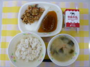 南部学校給食共同調理場献立カレンダー(献立は愛知県の栄養教諭が作成しています。献立に関するメッセージが掲載されている献立表は、献立一覧からご覧いただけます。) 小学校(安城南部、安城西部、高棚、明和、桜井、祥南、丈山、二本木、桜林、三河安城) 中学校(明祥、安城西、桜井、安祥) 2025年1月 前月 次月 日 月 火 水 木 金 土 1 2 3 6 7 8むぎごはん ぎゅうにゅう ビビンバのぐ きんしたまご ワンタンスープ アーモンドこざかな ☆スタートダッシュメニュー☆ 9ごこくごはん ぎゅうにゅう チキンカレー やさいソテー ファイバーゼリーのフルーツあえ ☆スタートダッシュメニュー☆ 10こめこパン(こむぎいり) ぎゅうにゅう やさいたっぷりやきそば ソーセージのケチャップに アセロラミニゼリー ☆スタートダッシュメニュー☆ 13 14ごはん ぎゅうにゅう こめこいかフライのレモンに キャベツのしそひじきあえ すずなとすずしろのとりだんごじる 15ごはん ぎゅうにゅう たらのぎんがみやき にくじゃが しそきゅうり 16ごはん ぎゅうにゅう ヤンニョムチキン だいずもやしときゅうりのサラダ わかめスープ 17スライスパン ぎゅうにゅう ツナいりオムレツ おおきなかぶのクリームに コールスロー いちごジャム 20むぎごはん ぎゅうにゅう マーボーどうふ あげぎょうざ(2こ) かいそうサラダ コーヒーぎゅうにゅうのもと 21わかめごはん ぎゅうにゅう さばのおかかに ぶたにくとこんさいのきんぴら キャベツのかおりあえ さくさくどうふ 22ごはん ぎゅうにゅう しらすコロッケ だいずのおやこサラダ ほうれんそうのかきたまじる ☆親子サラダに入っている大豆は安城農業士会からの寄贈です☆ 23ごはん ぎゅうにゅう つくね(2こ) こうやどうふのいりに きりぼしだいこんとほうれんそうのごまあえ 24サンドイッチバンズパン ぎゅうにゅう にぎすフライ みどりキャベツ ポークビーンズ こぶくろノンエッグタルタルソース ☆全国学校給食週間(24日~30日) 愛知県の郷土料理や地場産物が出ます☆ 27きしめん ぎゅうにゅう ごもくきしめんのしる かきあげ チンゲンサイとツナのわふうサラダ たくじょうわふうクリーミードレッシング 28ごはん ぎゅうにゅう ショーロンポー じもとやさいのオイスターソースいため きゅうりのちゅうかサラダ 29ごはん ぎゅうにゅう さけのしおやき こまつなのふくじんづけあえ すいとんじる ヨーグルト 30ロウカットげんまいごはん ぎゅうにゅう したじめしのぐ てりやきハンバーグ ふゆやさいのしろみそしる 31ごはん ぎゅうにゅう いわしのかばやき きゅうりのしおこんぶあえ のっぺいじる せつぶんまめ ☆節分献立☆