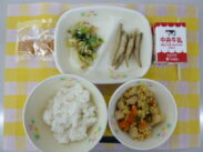 南部学校給食共同調理場献立カレンダー(献立は愛知県の栄養教諭が作成しています。献立に関するメッセージが掲載されている献立表は、献立一覧からご覧いただけます。) 小学校(安城南部、安城西部、高棚、明和、桜井、祥南、丈山、二本木、桜林、三河安城) 中学校(明祥、安城西、桜井、安祥) 2024年12月 前月 次月 日 月 火 水 木 金 土 2ごはん ぎゅうにゅう ミンチカツ だいこんサラダ えびととうふのくずじる 3ソフトめん ぎゅうにゅう だいずいりミートソース オムレツ コールスロー たくじょうコールスロードレッシング 4スライスパン ぎゅうにゅう わかどりのハーブやき ファイバースープ みかん だいずチョコクリーム 5ごはん ぎゅうにゅう つくね(2こ) うずらたまごいりうまに ゆかりあえ 6ごはん ぎゅうにゅう じゃがいものコロッケ チンゲンサイとツナのおひたし つみれじる 9ごはん ぎゅうにゅう わかさぎのからあげ こうやどうふのたまごとじ キャベツのなめたけあえ きらずあげ 10ロウカットげんまいごはん ぎゅうにゅう にらまんじゅう マーボーどうふ きゅうりのごまじょうゆあえ 11ごはん ぎゅうにゅう さけのぎんがみやき じゃがいものそぼろに れんこんときゅうりのサラダ たくじょうノンエッグマヨネーズ 12ミルクロールパン ぎゅうにゅう えびカツ まめっこサラダ コンソメスープ ココアぎゅうにゅうのもと ☆まめっこサラダに入っている大豆は安城農業士会からの寄贈です☆ 13ごはん ぎゅうにゅう いわしのうめに のりずあえ ごんべいじる カシューナッツ 16むぎごはん ぎゅうにゅう ふゆやさいのカレー ボロニアソーセージ さっぱりきゅうり 17ごはん ぎゅうにゅう あじのフリッター(2こ) かぼちゃのにつけ けんちんじる ☆冬至献立☆ 18ごはん ぎゅうにゅう コーンしゅうまい なまあげのオイスターソースいため きりぼしだいこんのちゅうかサラダ 19むぎごはん ぎゅうにゅう ツナピラフのぐ こめこチキンナゲット(2こ) トマトスープ いちごケーキ ☆お楽しみ献立☆ 20こがたロールパン ぎゅうにゅう イタリアンスパゲティ やきソーセージ フルーツゼリー 23 24 25 26 27 30 31