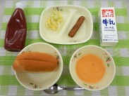献立カレンダープレビュー 2022年07月15日 サンドイッチロールパン ぎゅうにゅう キャロットポタージュ やきソーセージ やさいのあまずあえ たくじょうケチャップ サンドイッチロールパンには、きれめが はいっています。ソーセージと やさいのあまずあえを はさみ、ケチャップをかけて たべましょう。