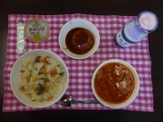 献立カレンダープレビュー 2018年02月05日 ごはん ぎゅうにゅう えびピラフのぐ チキンハンバーグのブラウンソースかけ ミネストラスープ とうにゅうデザート ふゆキャベツは「かんだまキャベツ」ともいわれ、まきがしっかりしています。にものや いためものなどの りょうりに むいています。