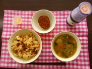 献立カレンダープレビュー 2019年02月25日 ごはん ぎゅうにゅう とりめしのぐ ミンチカツ けんちんじる りんごミニゼリー とりめしは となりのたかはましのきょうどりょうりです。たまごをうまなくなったにわとりのにくを あまからくにて ごはんとまぜてつくるりょうりです。