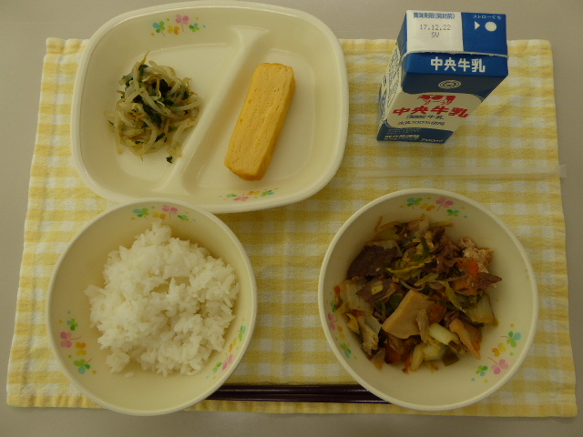 献立カレンダープレビュー 2017年12月15日 ごはん ぎゅうにゅう あつやきたまご すきやき もやしのおひたし すきやきは、にくをやいて さとうをまぶし しょうゆやさけで あじつけをしてたべる かんさいふうと わりした(だしじる・しょうゆ・みりん・さとうなどをあわせたちょうみりょう)でたべる かんとんふうがあります。