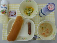 献立カレンダープレビュー 2018年03月07日 ミルクロールパン ぎゅうにゅう やきソーセージ クリームに あおパパイヤのサラダ たくじょうフレンチドレッシング いちごジャム フレンチドレッシングは アメリカでうまれた サラダドレッシングです。す、あぶら、しお、こしょうをまぜてつくります。