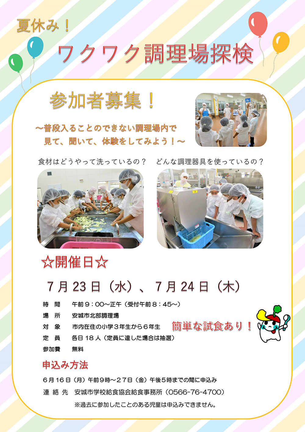 夏休み!ワクワク調理場探検募集内容